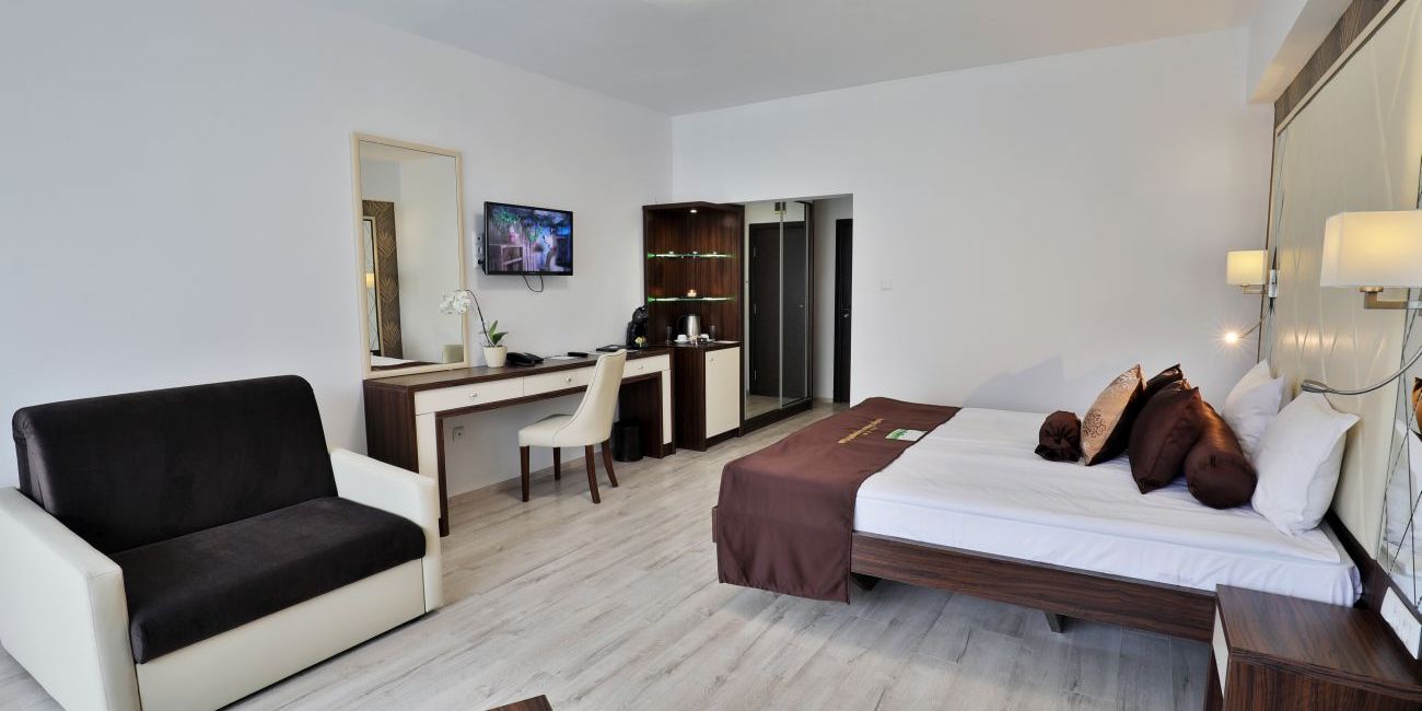 DBL Deluxe - suprafata aprox. 31 metri patrati (max 2+2), pat matrimonial sau 2 paturi separate si o canapea extensibila. Sunt disponibile camere interconectate printr-o usa.