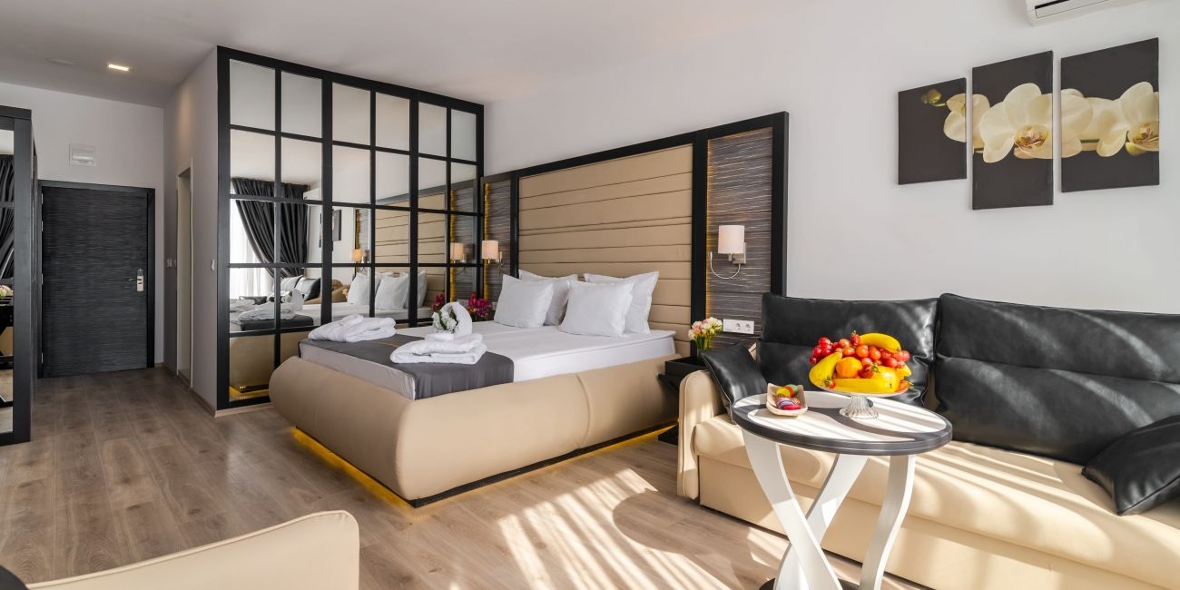 DBL PREMIUM - suprafata aprox. 30 metri patrati, 1 pat matrimonial, canapea extensibila, fotoliu extensibil. Capacitate max. 2+2/3 pers.