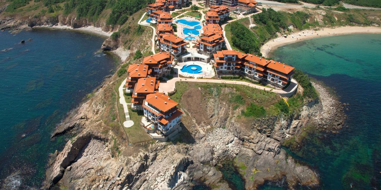 Complexul hotelier si apartamente de vacanta Saint Thomas de 5 stele este un loc unic in Bulgaria, fiind situat in mijlocul naturii neatinse de mana omului, inconjurat de marea cristalina, paduri virgine si rezervatiile naturale Arkoutino si Ropotamo. Saint Thomas asezat ca o veche cetate medievala pe un promontoriu superb ofera o priveliste ametitoare, 2 plaje virgine, spectaculoase, conditii si facilitati de inalta clasa pentru turisti ce stiu sa le aprecieze si care nu agreeaza turismul de masa. Complexul de vacanta Saint Thomas denumit si Holiday Village Saint Thomas Residences constă dintr-un hotel și 9 clădiri de apartamente, construite in stilul vechilor case traditionale din Sozopol. Plaja cu nisip fin se afla in imediata apropiere, marginita de dune, parte a rezervatiei naturale Arkoutino cu ape limpezi cristaline, salbatica si neintinata de mana omului. Pe plaja se afla si bar beach-ul ce ofera pe langa racoritoare, bere, bauturi alcoolice si salate, peste si gratar. Holiday Village Saint Thomas Residence a fost inaugurat in Iulie 2008 si se afla in cadrul rezervatiei Arkutino, la 2 km sud de mai cunoscuta Duni Royal Resort, 12 km sud de Sozopol, 12 km de Primorsko si 50 de km de Burgas si se compune dintr-un hotel de 5 stele cu un total de 52 de camere si 9 cladiri de apartamente de 3 stele cu unul si doua dormitoare. Datorita pozitiei sale unice, cadrul natural mirific virgin, conditiilor deosebite si calitatii serviciilor de inalta tinuta, Holiday Village Saint Thomas Residence reprezinta locul ideal pentru turisti deosebiti care isi doresc vacante deosebite.