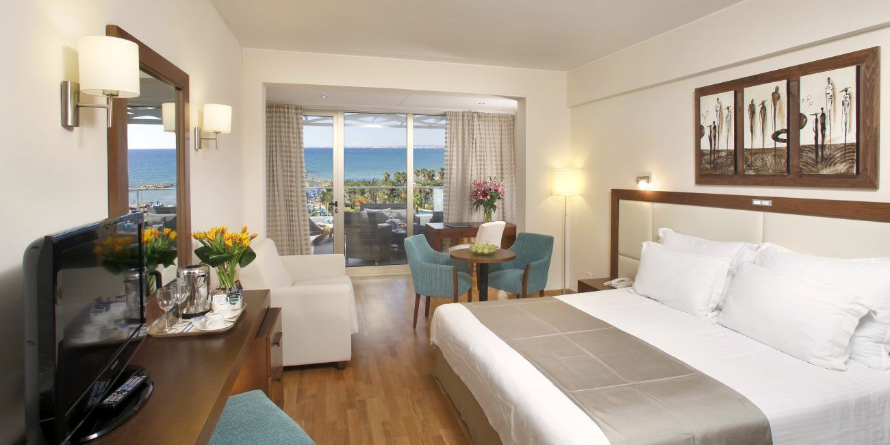 Golden Bay Beach Hotel dispune de camere mari, spatioase, mobilate modern.