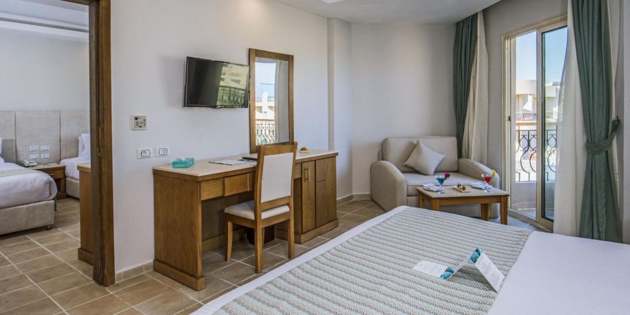 Hotel Sunrise Aqua Joy Resort dispune de camere moderne cu tersasa sau balcon au dormitor cu pat king size sau paturi twin, zona de relaxare, baie cu dus, aparat pentru prepararea de ceai sau cafea, minibar, birou, TV ecran plat cu canale prin satelit, telefon, aer conditionat, seif.