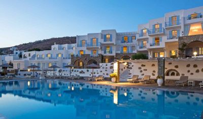 Hotel Manoulas Beach de 4 stele din Mykonos este un hotel elegant aflat pe malul marii in golful Agios Ioannis, la 4 km de centru orasului Mykonos. Manoulas Beach este construit intr-un stil arhitectural traditional cycladic si dispune de conditii de cazare excelente, facilitati de lux, o piscina generoasa si un restaurant cu specific grecesc si mediteraneean foarte apreciat, amplasat chiar pe malul marii.