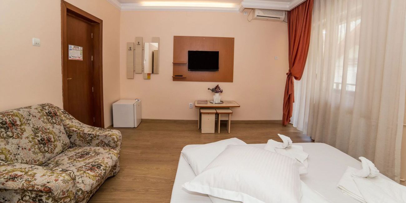 Toate camerele sunt dotate cu: baie proprie cu dus, mobilier nou, TV cablu, telefon, frigider. Toate camerele pensiunii sunt personalizate si decorate diferit.