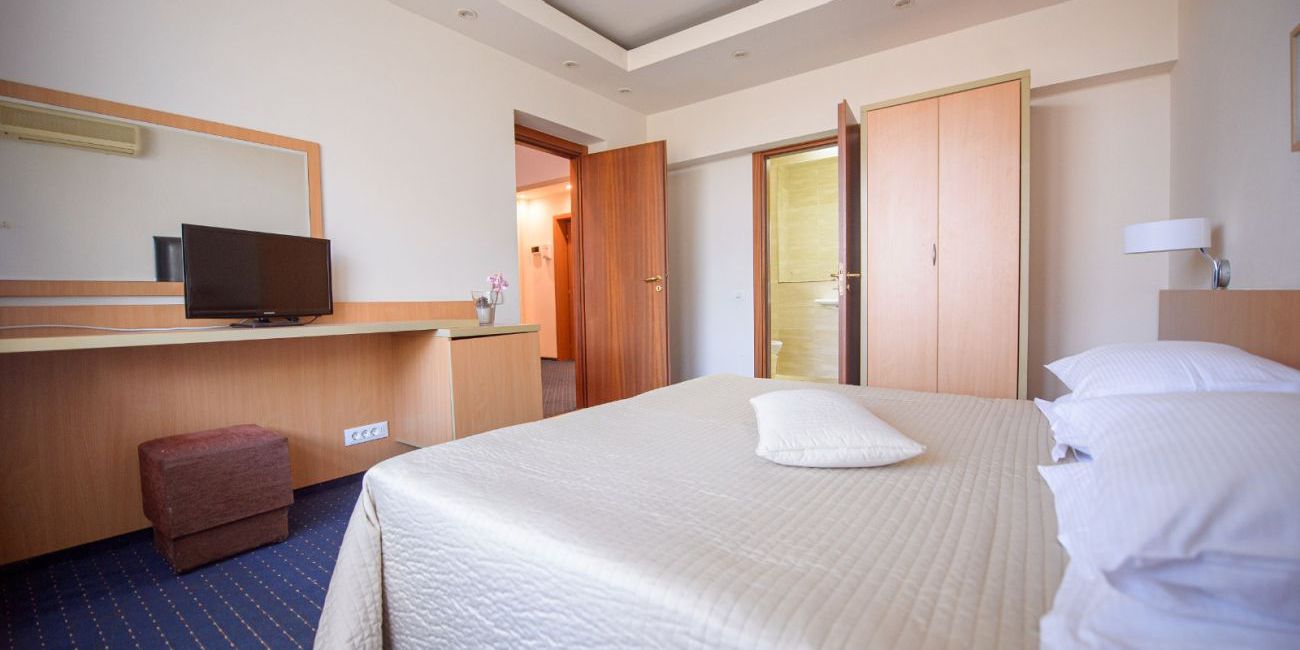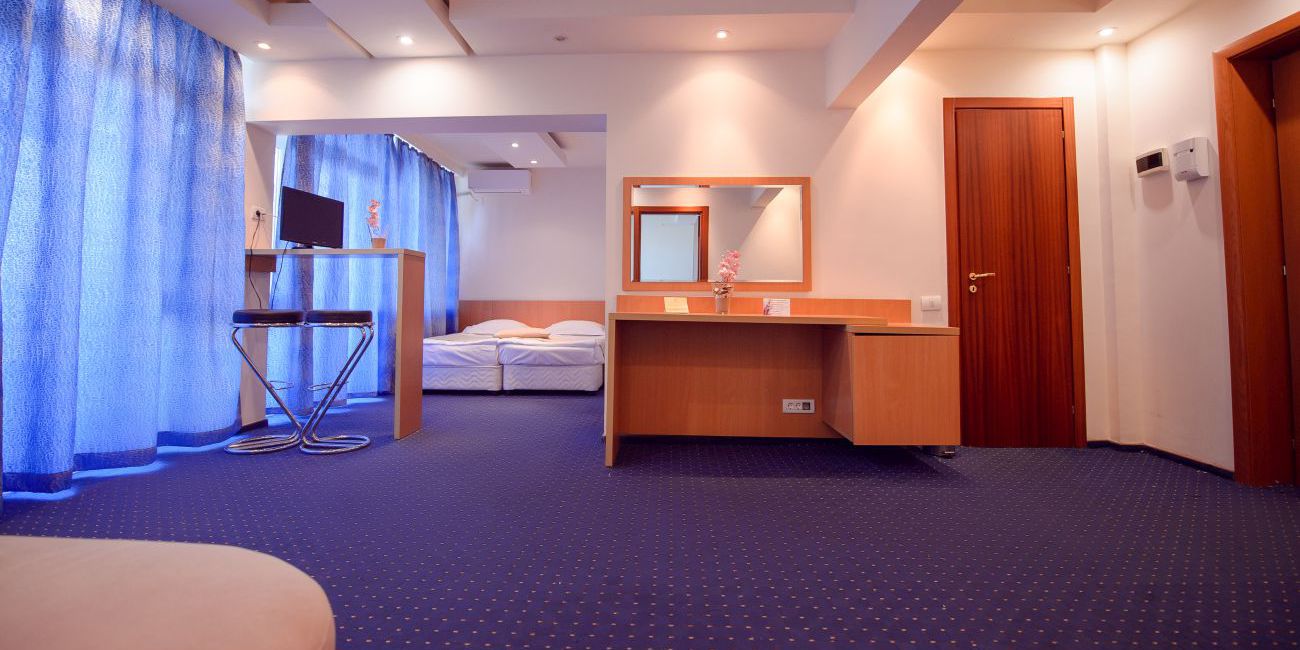 Toate camerele sunt dotate cu: baie cu dus, uscator de par, TV LCD, aer conditionat, , minifrigider, seif, balcon (numai la camerele de la eta), gresie, telefon.