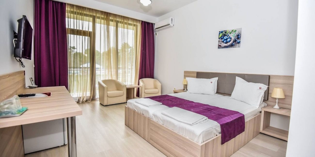 Toate camerele sunt dotate cu: aer conditionat, TV LCD, minibar, baie cu dus, uscator de par, internet Wi-Fi, parchet, balcon