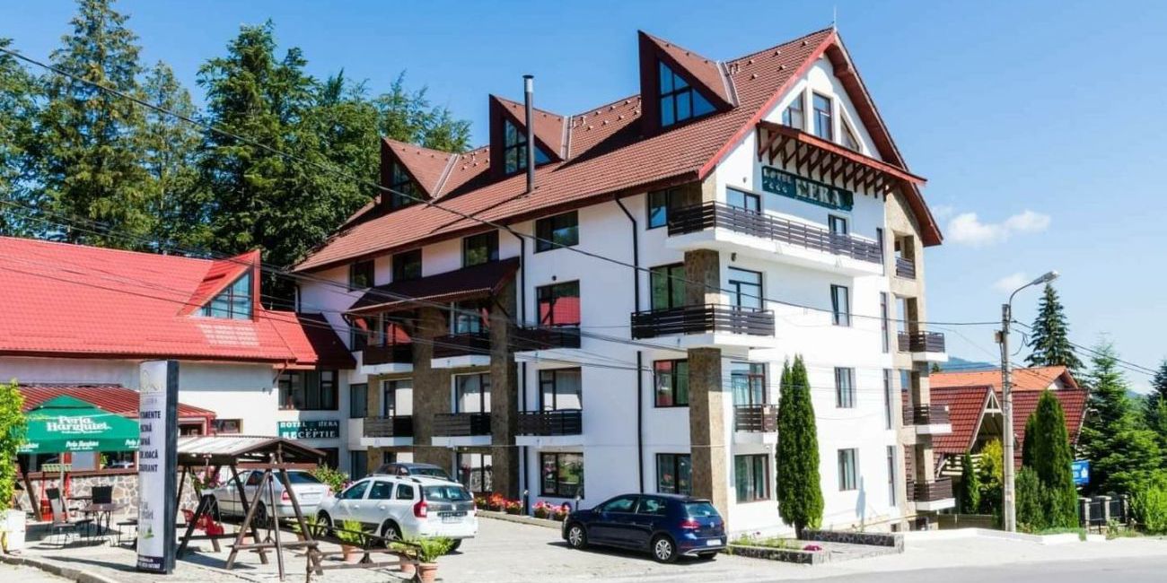 Hotelul Hera de 3 stele din Predeal este situat la 15 minute de partia Clabucet pe strada Trei Brazi, intr-un cadru natural deosebit. Hotelul Hera ofera cazare cu un confort excelent in 20 de aprtamente si 4 garsoniere foarte spatioase si dotate cu toate utiliattile de care ai nevoie pentru un sejur cat mai placut. Inconjurat de brazi, cu aer curat si ozonat de munte, cu restaurantul unde se pot servi atat preparate traditionale, vanatoresti, cat si specialitati din bucataria internationala, cu piscina acoperita unde se se poate face baie atat iarna pe temperaturi scazute, cat si vara, cu serviciile de calitate, cu caldura si grija cu care esti inconjurat de gazde, Hotel Hera din Predeal dispune de toate conditiile pentru a-ti petrece aici vacantele, sarbatorile de iarna sau Revelionul cu prietenii si cei dragi.