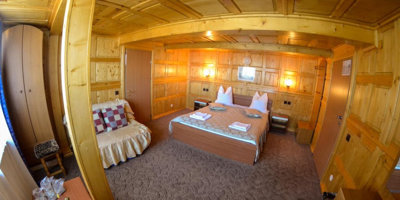 - 2 apartamente (pat matrimonial,baie cu hidromasaj, TV, frigider, minibar, balcon, room service).