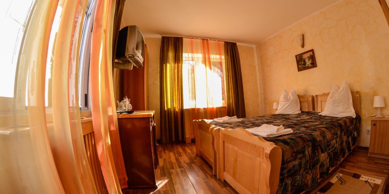- 17 camere duble (pat dublu/pat matrimonial, baie proprie, TV, frigider, minibar, balcon, room service).
