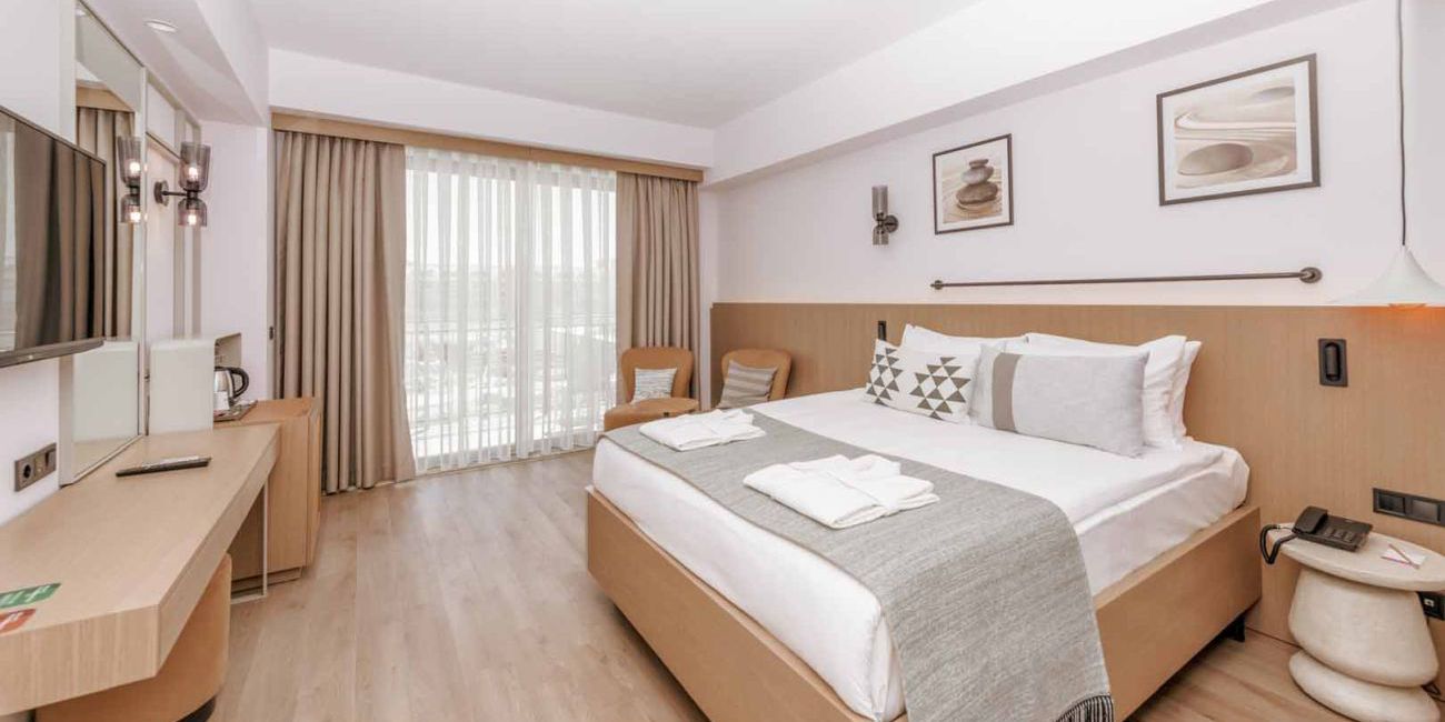 Hotel Belek Beach Resort dispune de 5 corpuri de 4 si 5 etaje si un total de 475 de spatii de cazare - 366 de camere standard ( 28 mp - max.2+2/3+1 pers); 104 family room (40 mp - 2 camere interconectate - max 4 pers); 5 camere pentru persoane cu disabilitati