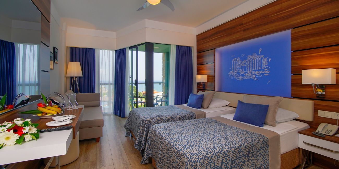 Toate camerele au balcon, vedere la mare sau gradina (in functie de optiune), baie privata cu cada si dus, uscator, A/C centralizat, telefon direct, mocheta, seif, mini bar, Tv satelit si muzica.