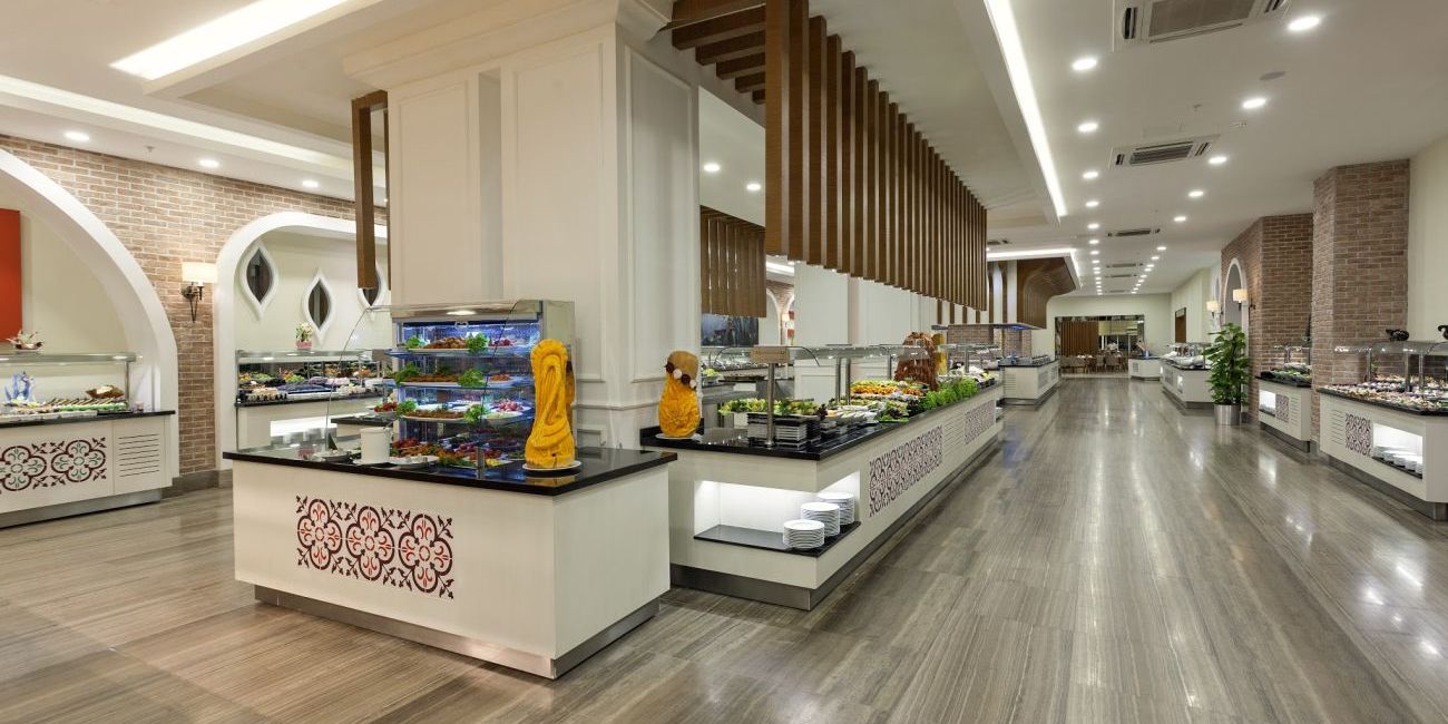 8 Restaurante - Restaurantul principal, Restaurant 24/7; Lalezar A-la-Carte Restaurant (specific turcesc); Sapore A-la-Carte Restaurant (specific italian); Selenge A-la-Carte Restaurant (bucatarie mongoleza); Robin's Beach Snack; AquaPark Snack; Anatolian House (clatite turcesti)