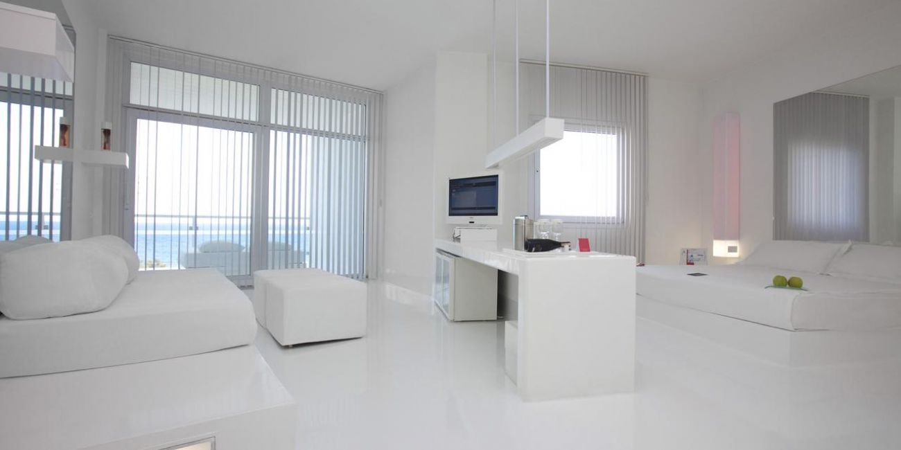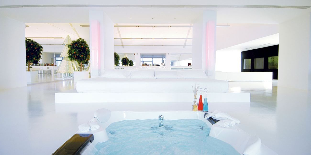 - 1 ”9.5 Weeks Suite” cu o camera (pat king size, mobila tapisata, 2 TV, DVD & CD player, masa de biliard, maxibar, 2 benzi de alergat, jacuzzi, sauna, 2 terase, max. 2 pers., 500 mp, servicii VIP);