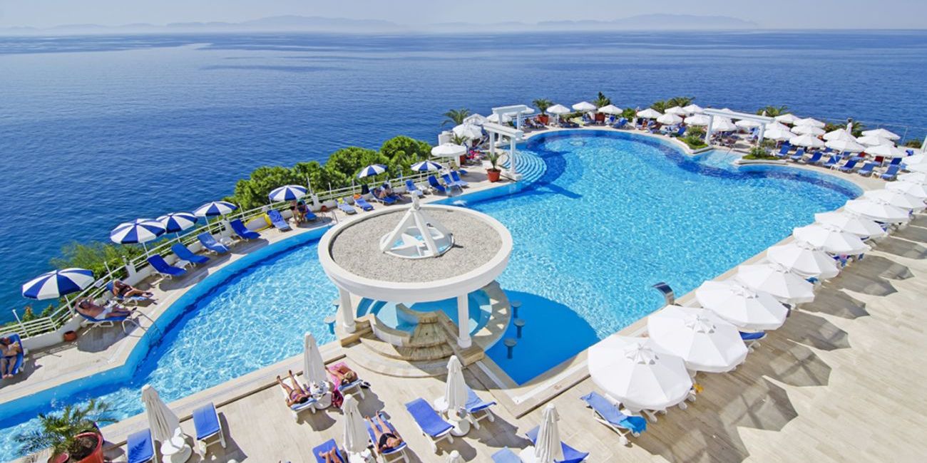 Hotelul Korumar Deluxe de 5 stele din Kușadasî este situat pe malul mării, la 2 km de centrul orașului și 70 de km de aeroportul din Izmir. Hotelul a fost construit în anul 1990 și se întinde pe o suprafață totală de 14.000 de metri pătrați. Hotelul Korumar Deluxe din Kușadasî este o alegere elegantă pentru o vacanță de neuitat pe malul Mării Egee. Amplasat pe o stâncă ce oferă priveliști spectaculoase asupra mării și a portului, hotelul combină luxul clasic cu ospitalitatea turcească. Facilitățile includ piscine interioare și exterioare, un centru spa rafinat, plajă privată cu acces direct la mare și restaurante gourmet cu preparate locale și internaționale. Apropierea de atracții precum Efes și Casa Fecioarei Maria face din acest hotel o bază ideală atât pentru relaxare, cât și pentru explorare culturală.