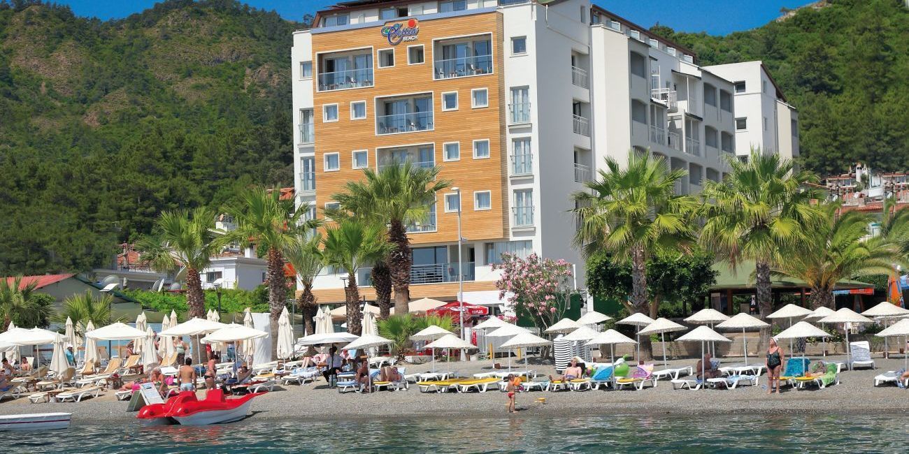 Hotel Cettia Beach Resort de 4 stele din Marmaris face parte din lantul hotelier Cettia Hotels si este situat pe malul marii, la 3.5 km de centrul orasului, la cateva minute de mers pe jos de Port, orasul vechi si bazar si 150 de km de aeroportul Milas din Bodrum. Hotelul Cettia Beach este destinat numai adultilor sau tinerilor cu varsta de peste 16 ani si a fost construit in anul 1994 pe o suprafata de 2,900 de metri patrati. Cettia Beach Resort din Marmaris este un hotel cochet, foarte elegant si stilat ce ofera conditii de cazare exceptionale si servicii de inalta clasa, fiind foarte apreciat de toti turistii care si-au petrecut aici vacanta de vara, pe litoral.