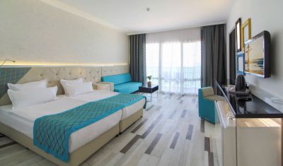 Family Room (cu vedere la mare) - suprafata aprox. 49 metri patrati - living cu canapea extensibila si un dormitor cu pat matrimonial, despratite printr-o usa glisanta. Max.2+2/3+1 pers.