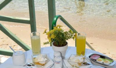 Great location, next to the beach, nice and clean rooms, big swimming pool, very good breakfast. We enjoyed the food, drinks and the service at their restaurant and private beach! Maria is so nice...