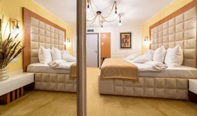 - Dubla Amyntas Standard - suprafata aprox. 21 metri patrati, fara balcon, pat matrimonial.
