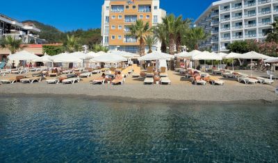 Hotel Cettia Beach Resort de 4 stele din Marmaris face parte din lantul hotelier Cettia Hotels si este situat pe malul marii, la 3.5 km de centrul orasului, la cateva minute de mers pe jos de Port, orasul vechi si bazar si 150 de km de aeroportul Milas din Bodrum. Hotelul Cettia Beach este destinat numai adultilor sau tinerilor cu varsta de peste 16 ani si a fost construit in anul 1994 pe o suprafata de 2,900 de metri patrati. Cettia Beach Resort din Marmaris este un hotel cochet, foarte elegant si stilat ce ofera conditii de cazare exceptionale si servicii de inalta clasa, fiind foarte apreciat de toti turistii care si-au petrecut aici vacanta de vara, pe litoral.