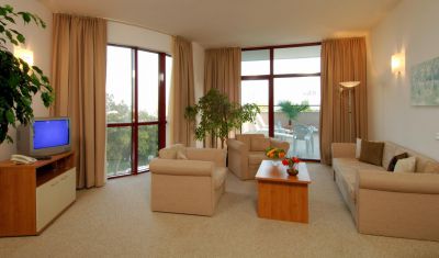 - Mic dejun, pranz si cina in restaurantul principa Poseidon, Gustari si inghetata dimineata si dupa amiaza, Bauturi racoritoare si bauturi alcoolice locale (cafea, ceai, lapte, apa, suc de fructe, cola, apa tonica, bere locala la draft, vin rosu si alb, bauturi alcoolice locale (Vodka, Gin, Rom, Whisky, Brandy, Mastika, o sticla de apa minerala 1,5 litri/zi in camera) in fiecare zi de la ora 10:00 la 23:00. Toate bauturile de mai sus se servesc gratuit in Restaurantul Poseidon, Artemis Juice Bar, Barul de la piscina si Clubul de Noapte Apollo.