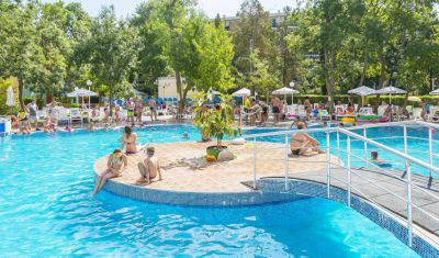 - Acces piscina exterioara cu sectiune pentru copii si tobogan cu apa, sezlonguri si umbrele la piscina, inchiriere prosoape de plaja, spatiu fitness in aer liber, tenis de masa, mini golf, amfiteatru spectacole de seara.