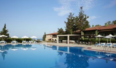 Simantro Resort de 5 stele din Halkidiki Kassandra face parte dintre hotelurile cu servicii luxury class si se distinge prin multele elemente Bizantine. Faptul ca a fost construit similar cu faimoasele manastiri de pe Muntele Athos, lasa turistilor impresia ca hotelul chiar ar fi o manastire (arhitectural vorbind). Cine ii spune pe nume, nu greseste; Simantro, in limba graca inseamna "Frumos" si se contopeste perfect cu cadrul natural, arhitectura si istoria hotelului, iar elementele de piatra si lemn il fac unic. Simantro Resort este situat in partea de nord-vest a peninsulei Kassandra, in foarte cunoscuta zona Sani. Este un hotel ce ofera standarde inalte de calitate, servicii si facilitati. Oaspetii au la dispozitie multiple activitati sportive, restaurante si baruri, plaja perfect dotata, patru piscine, echipa de animatie, mini market, centru spa cu gym si multe altele.