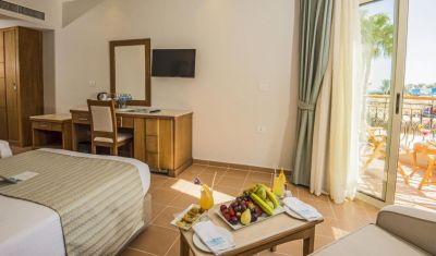 Hotel Sunrise Aqua Joy Resort dispune de camere moderne cu tersasa sau balcon au dormitor cu pat king size sau paturi twin, zona de relaxare, baie cu dus, aparat pentru prepararea de ceai sau cafea, minibar, birou, TV ecran plat cu canale prin satelit, telefon, aer conditionat, seif.