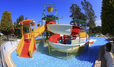 Sporturi:2 piscine exterioare cu sectiune pentru copii, piscina interioara cu tobogan, aerobic, dart. Cu plata: scoala de scufundari, navigatul, jetsky, teren de tenis, masa de tenis, biliard, minigolf, volei, baschet, animatie pe tot parcursul zilei.