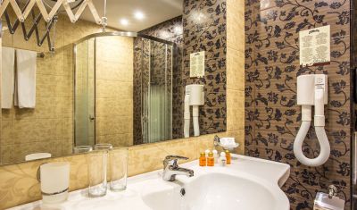 Toate camerele sunt dotate cu: baie cu cabina de dus, uscator de par, cosmetice de baie, aer conditionat, TV LCD cablu, minibar, telefon, conexiune internet Wi-Fi (contracost), pardoseala cu parchet, balcon.