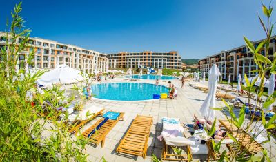 Aparthotel Premier Fort Beach este amplasat intre statiunile Sveti Vlas si Sunny Beach, la o distanta de 300 de metri de plaja. Aparthotelul este format din 5 cladiri a cate 4 etaje si 2 lifturi, insumand un numar total de 500 de camere. Aparthotel Premier Fort reprezinta o alegere potrivita pentru familiile cu copiii in special, punand la dispozitia acestora un program de animatie bine structurat si un aqua park.
