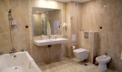 Toate camerele sunt dotate cu: aer conditionat centralizat, TV LCD satelit, radio, telefon, mini bar, seif, conexiune internet Wi-Fi (gratuit), baie cu cada sau dus, uscator de par, cosmetice de baie premium, pardoseala cu mocheta, balcon.
