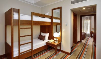 114 Camere Family - 28-38 metri patrati; capacitate maxima 5 pax; doua dormitoare cu pat dublu si paturi single, tv, balcon, baie proprie, telefon, wifi, seif, aer conditionat, mini bar, uscator de par