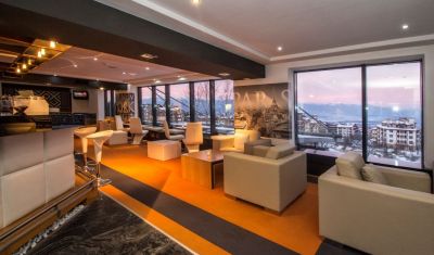 Hotelul Saint George Palace de 4 stele din Bansko are o pozitie excelenta, la 800 de metri de statia de transport pe cablu, intr-un cadru natural de poveste. Hotelul se afla la 3 km de centru statiunii Bansko si doar la cateva minute de mers de o mare varietate de centre comerciale, restaurante si cluburi de noapte. De asemenea de la Hotel Saint George Palace se poate pleca in drumetii, trasee montane, plimbari si bineinteles iarna la ski. Conditiile de cazare generoase, in camere spatioase si modern mobilate, atmosfera calda, prietenoasa si serviciile de calitate, alaturi de preturile convenabile fac din Hotel Saint George Palace din Bansko, un loc cautat de turistii ce-si doresc o vacanta la munte ieftina in conditii de calitate.