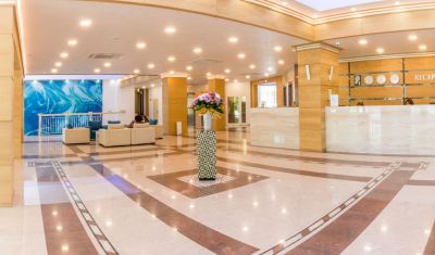 - restaurant a la carte; lobby bar non stop; pizzerie italiana; taverna greceasca; bar pe plaja; piano bar; room service non stop; seif la receptie; spalatorie si calcatorie; rent-a-car; sala aerobic; centru fitness; biliard; baie romana; baie turceasca; jacuzzi; baie de aburi; sauna; sauna cu infrarosii; masaj; solar; gradina de vara; piscina exterioara; piscina exterioara pentru copii; piscina interioara are caderi de apa/ cascade; tenis de masa club internet; salon de frumusete; magazin; schimb valutar; sala de conferinte – 240 locuri; centru de afaceri cu 4 sali de afaceri (20 locuri); sala de nunti; parcare nepazita contra cost.