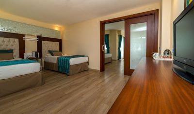 Family Suite - intre 34 si 53 de metri patrati (18 camere), toate apartamentele cu vedere la mare au un dormitor cu pat matrimonial si un dormitor cu doua paturi de o persoana, un living si o baie (cu dus si cada).