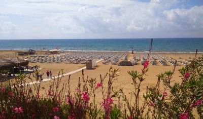 Plaja cu nisip. Sezlongurile, umbrelele si prosoapele sunt gratuite.