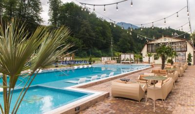 - Duble Superioare au suprafata de aprox 34 metri patrati si dispun de un pat matrimonial si unul single, sunt pozitionate la parterul hotelului si se bucura de terasa proprie cu masuta si bancheta.